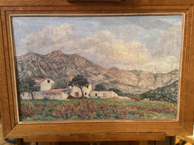Aquarelle exposé au musée cantini représentant des paysans en charette avec 4 boeufs dans un chemin signé Émile Charles Joseph Loubon, né le 12 janvier 1809 à Aix-en-Provence, mort le 3 mai 1863 à Marseille, est un peintrefrançais, réputé pour ses paysages provençaux . En 1829, Granet l'invite à l'accompagner pour un voyage d'études à Rome, où il parfait ses connaissances d'architecture. Mais c'est dans le dessin de plein air qu'il excelle. Granet trouve bons ses premiers paysages italiens. Loubon décide de se consacrer exclusivement à la peinture et de rester deux années à Rome. Il rentre en France en 1831 et part...