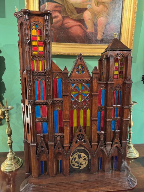 Meuble de maitrise de style néo classique fin 19 ème début XX ème en accajou vitraux peint de différente couleur . Dimensions : Hauteur 114 cm Largeur 82 cm Profondeur 34 cm...