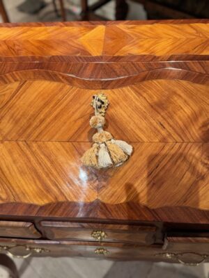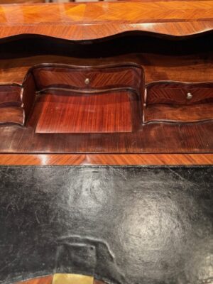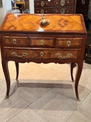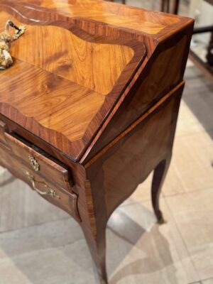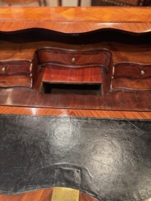 Bureau dos d’âne d’époque Louis XV en bois de placage de bois de rose de petite dimension .